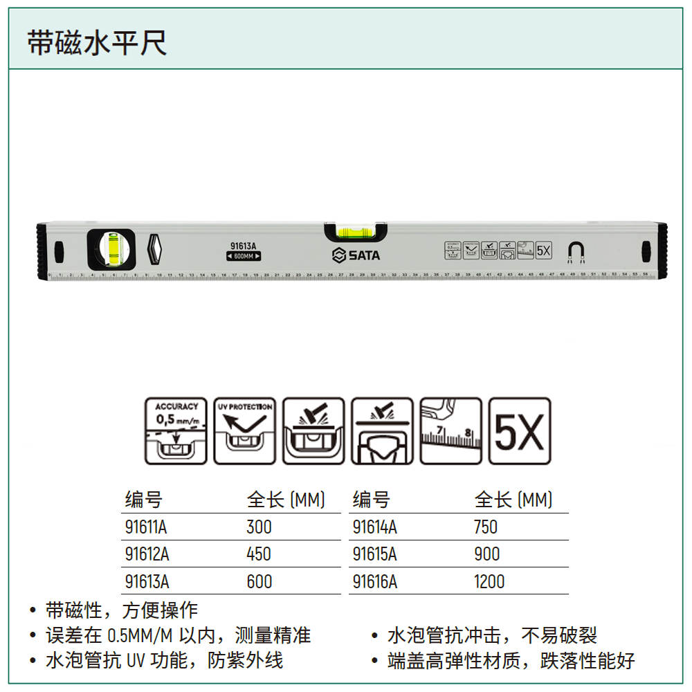 带磁水平尺750MM/30″ ; 91614A