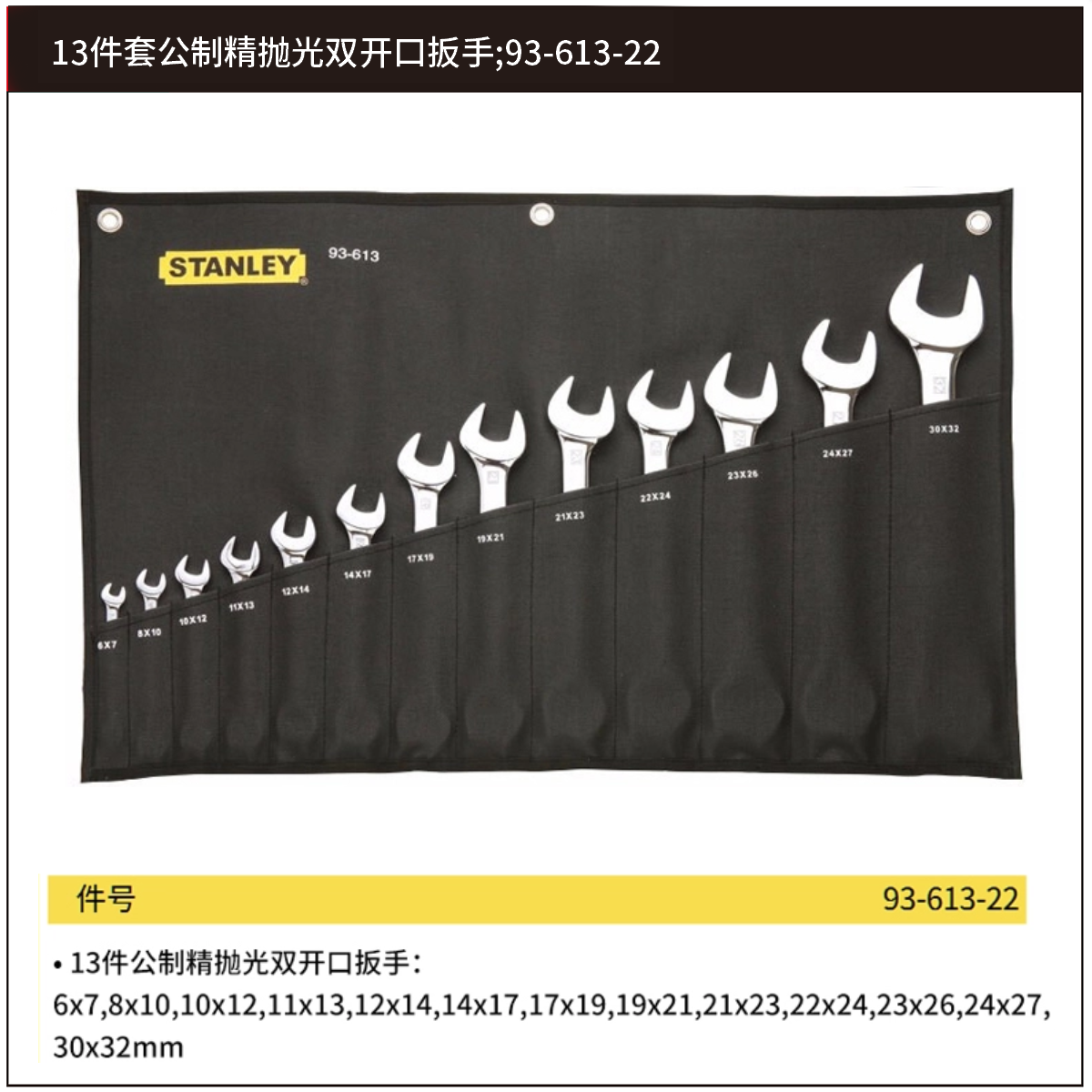 13件套公制精抛光双开口扳手;93-613-22