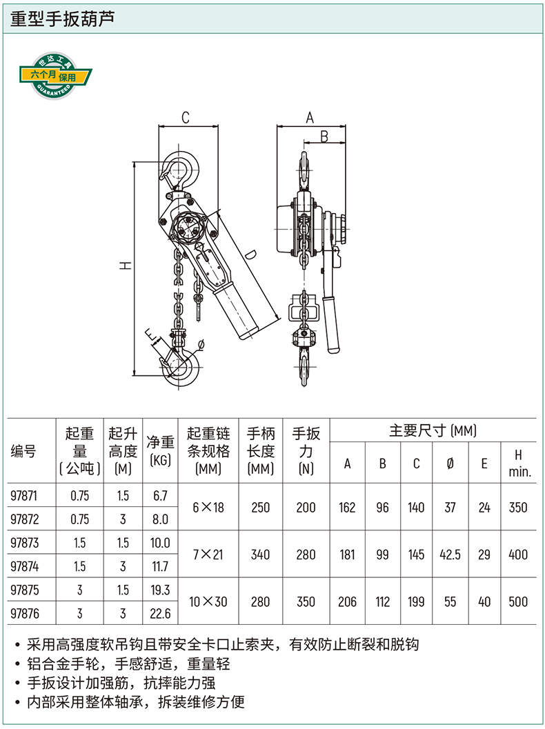 重型手扳葫芦0.75公吨1.5米 ; 97871