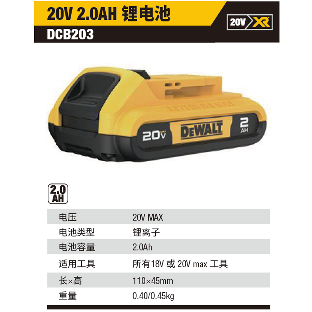 20V Max 2.0Ah 锂电池;DCB203-A9