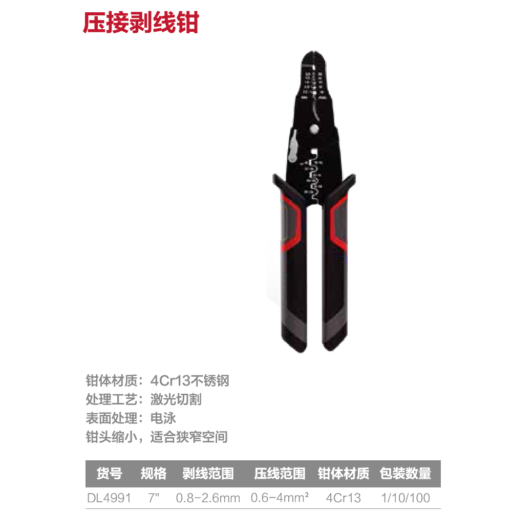 压接剥线钳0.8-2.6mm(黑)(把);DL4991