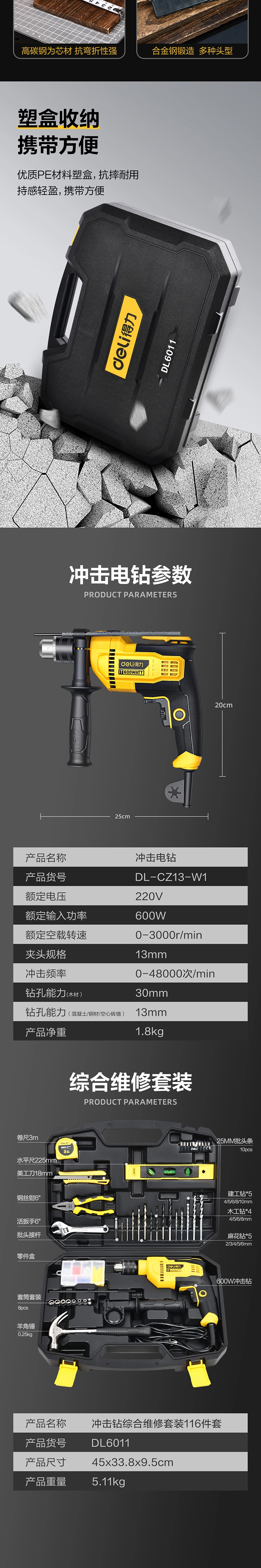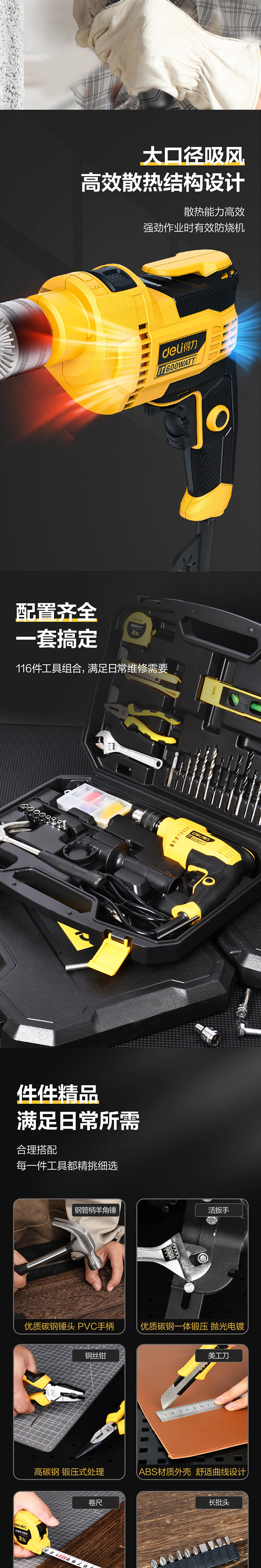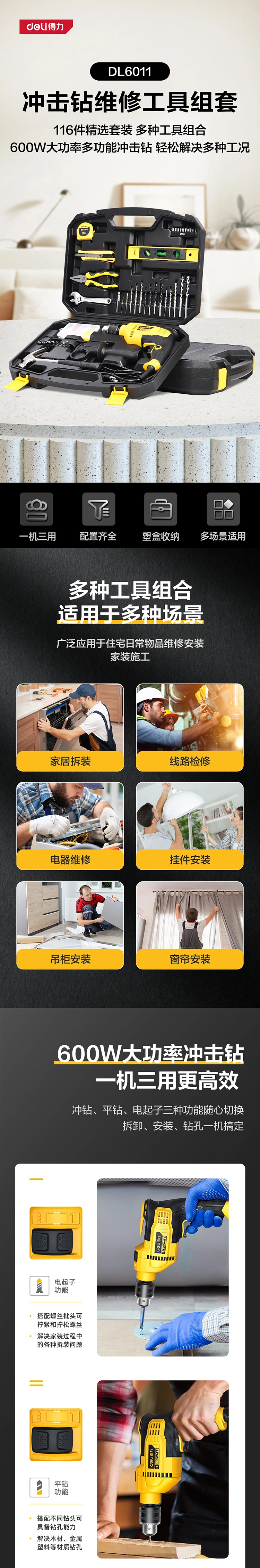 冲击钻综合维修套装116件套(黑)(套);DL6011