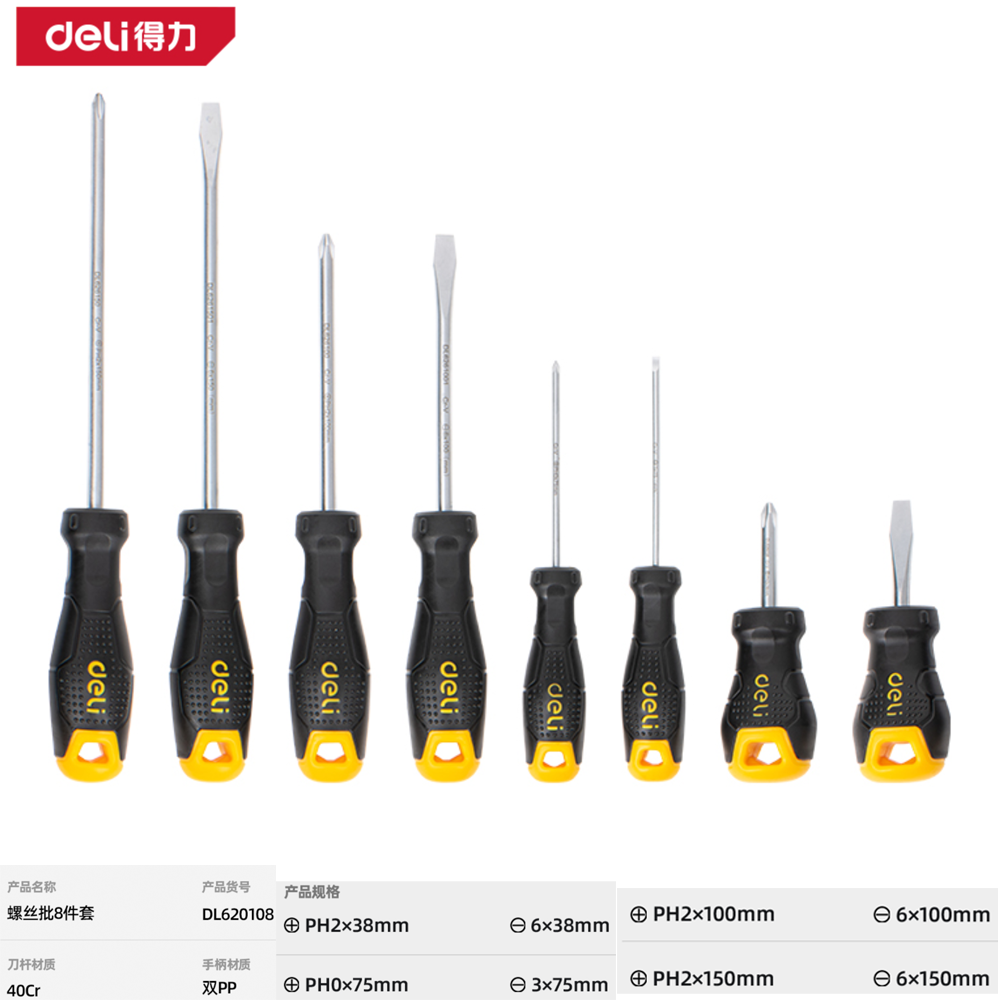 塑柄螺丝批组套8件套(黄)(套);DL620108