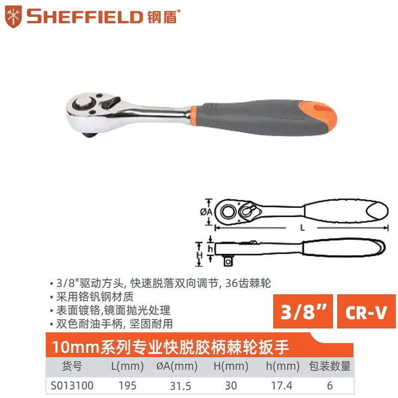 10mm系列梨型头快速脱落胶柄棘轮扳手;S013100
