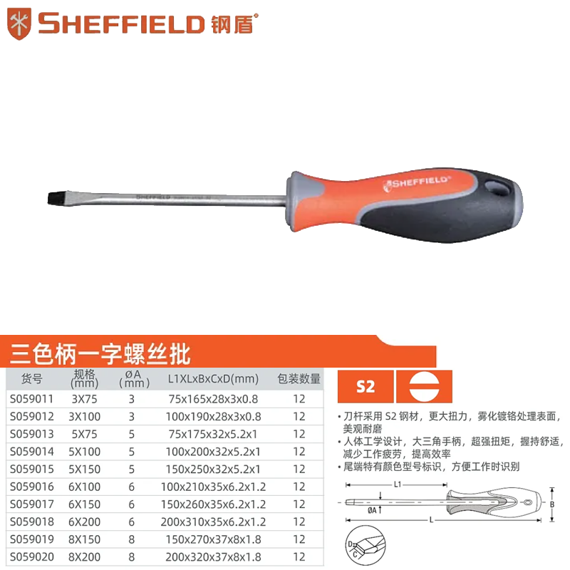 三色柄一字螺丝批5X100mm;S059014