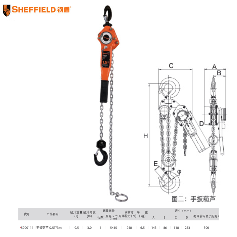 手扳葫芦 0.75Tx1.5m ;S200120