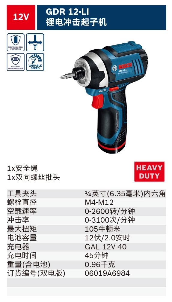 成为第一个“GDR 12-LI(2*2.0AH);06019A6984” 的评价者